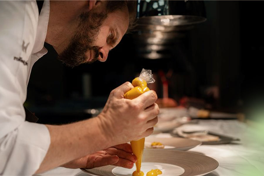 Am Ostersonntag & Ostermontag: Unser Küchenchef Philipp Wiese empfiehlt an den Feiertagen ein geschäumtes Bärlauchsüppchen, Carree vom Salzwiesenlamm unter einer Bärlauchkruste, hausgemachte Bärlauchpasta sowie Mousse von der Piemonteser Haselnuss.