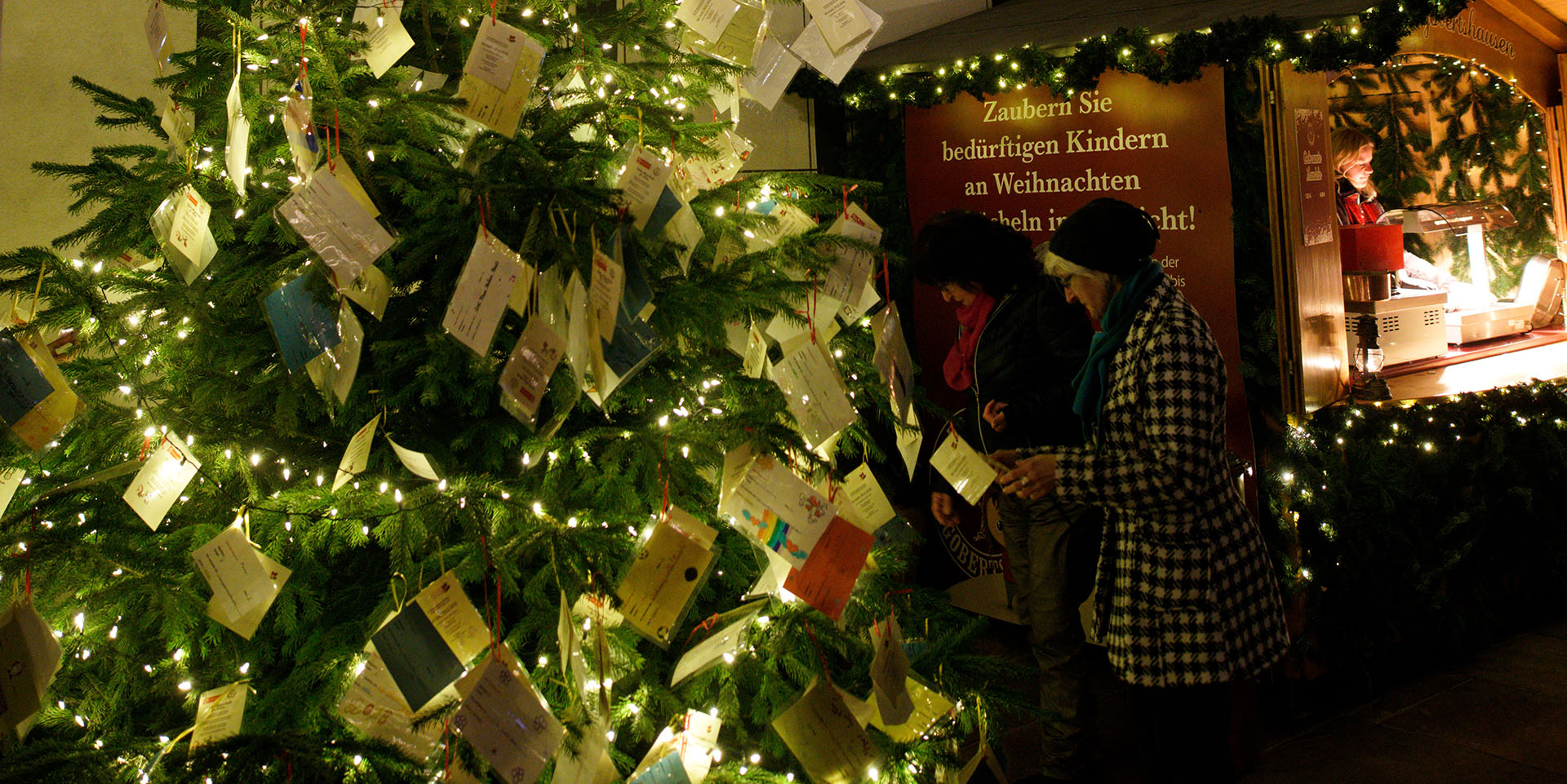 Auch in diesem Jahr möchten wir mit Ihrer Unterstützung die Herzenswünsche der Marburger Tafelkinder erfüllen. Auf unserem Weihnachtsmarkt können Sie sich einen Wunschzettel vom Baum der Wünsche nehmen und Kinderaugen zum Strahlen bringen. Reichen Sie das Weihnachtsgeschenk anschließend bei der Marburger Tafel ein.
